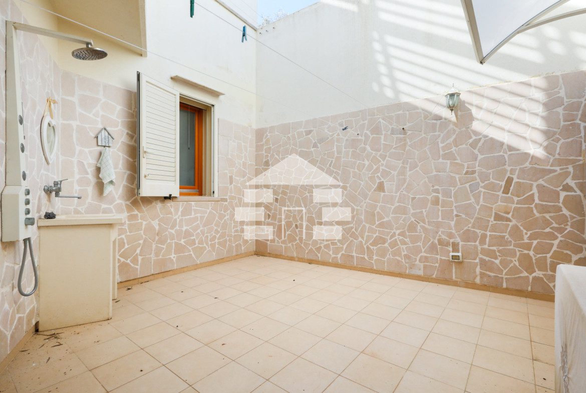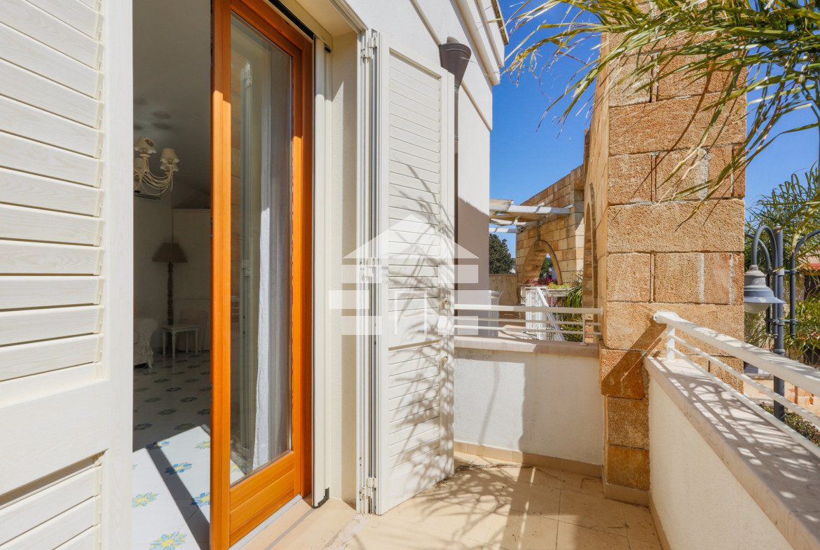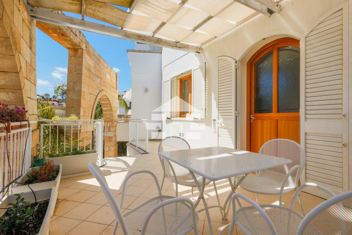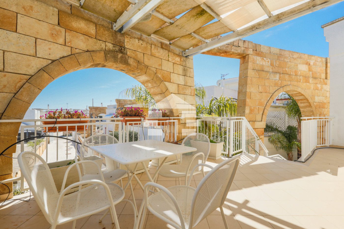 La villa è disposta su due livelli, e ricopre una superficie di 136 metri quadri, con giardino al piano terra di circa 100 metri quadri. La terrazza sul lastricato solare è attrezzata per pranzi e cene, con Barbecue, forno per pizze e pane tipico del Salento.
