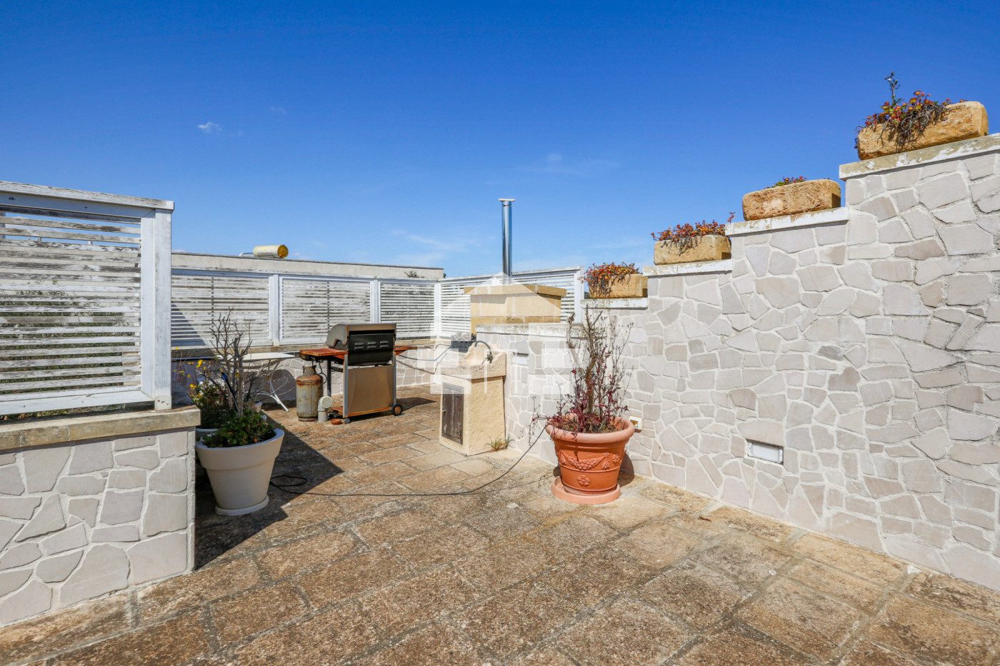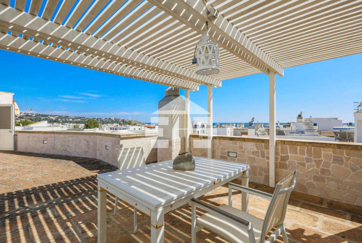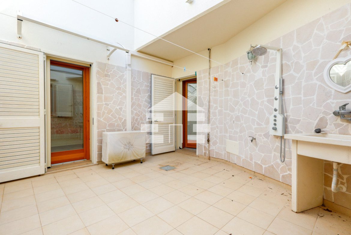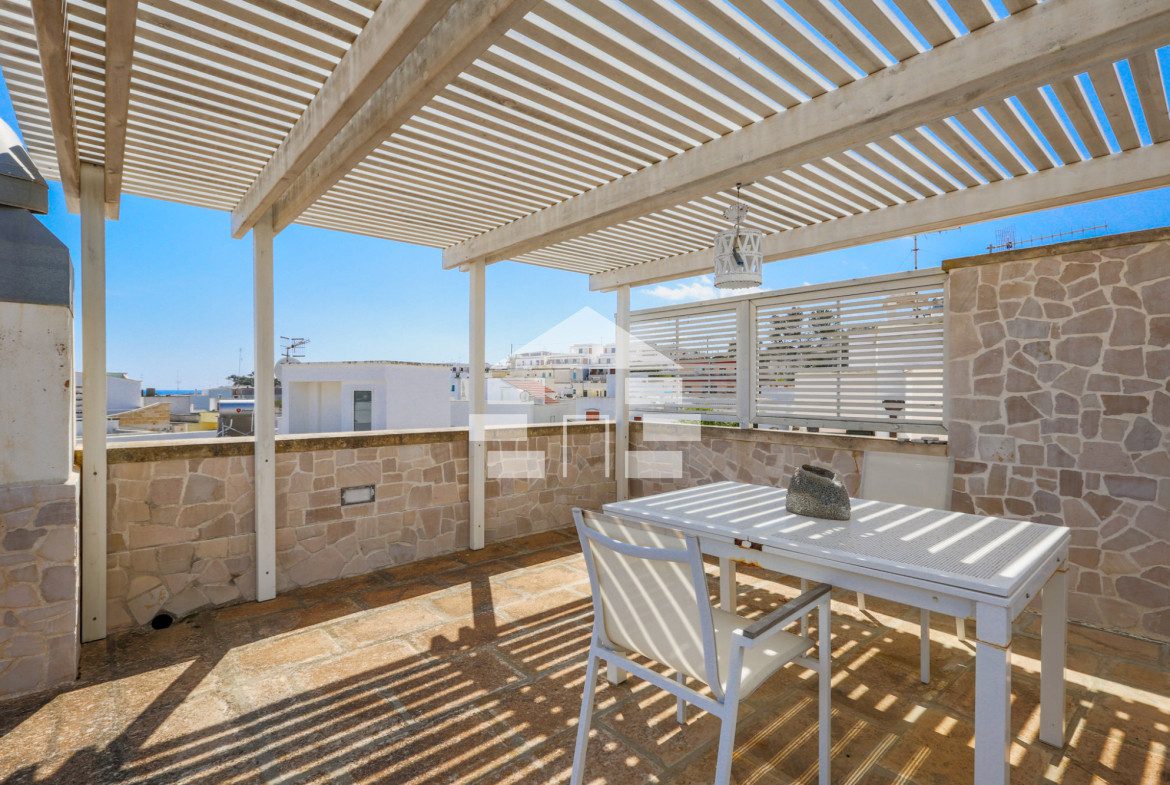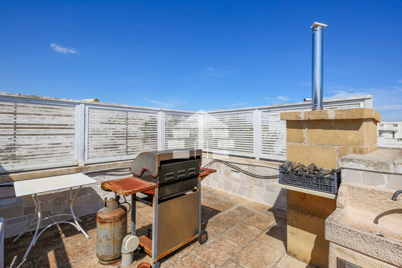 La villa è disposta su due livelli, e ricopre una superficie di 136 metri quadri, con giardino al piano terra di circa 100 metri quadri. La terrazza sul lastricato solare è attrezzata per pranzi e cene, con Barbecue, forno per pizze e pane tipico del Salento.