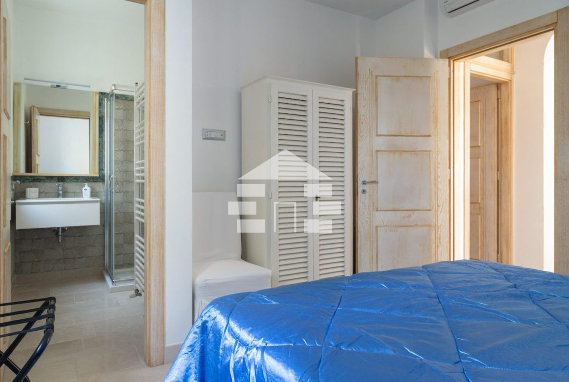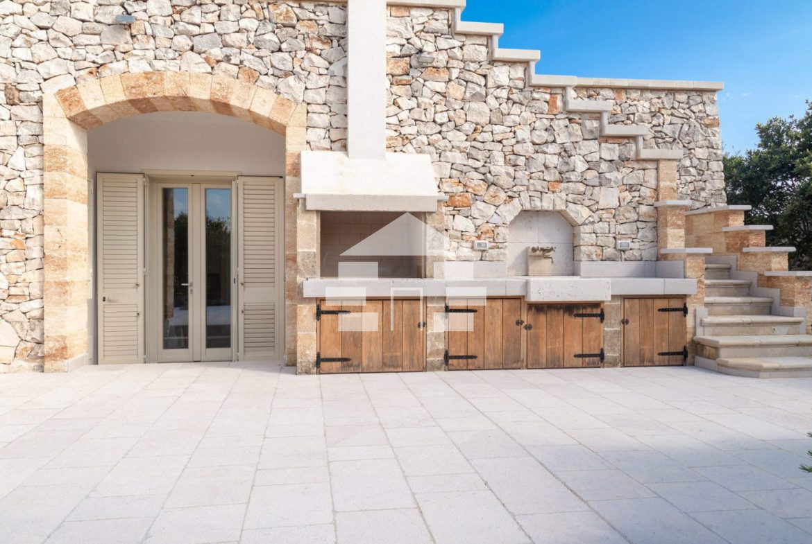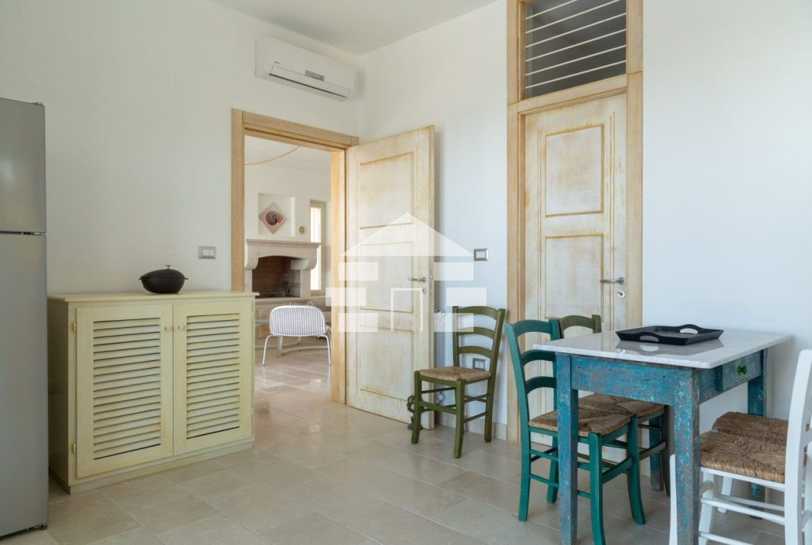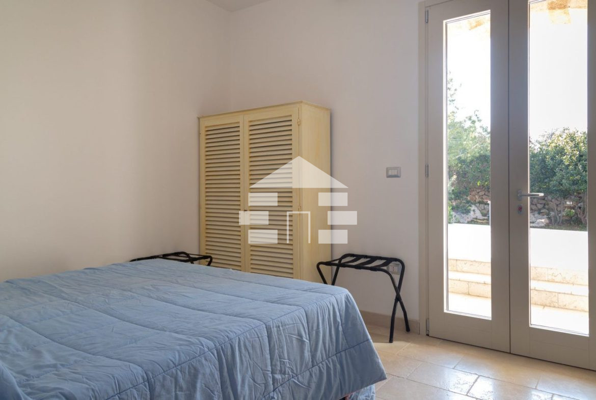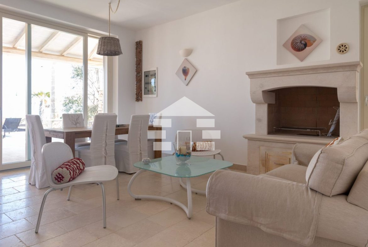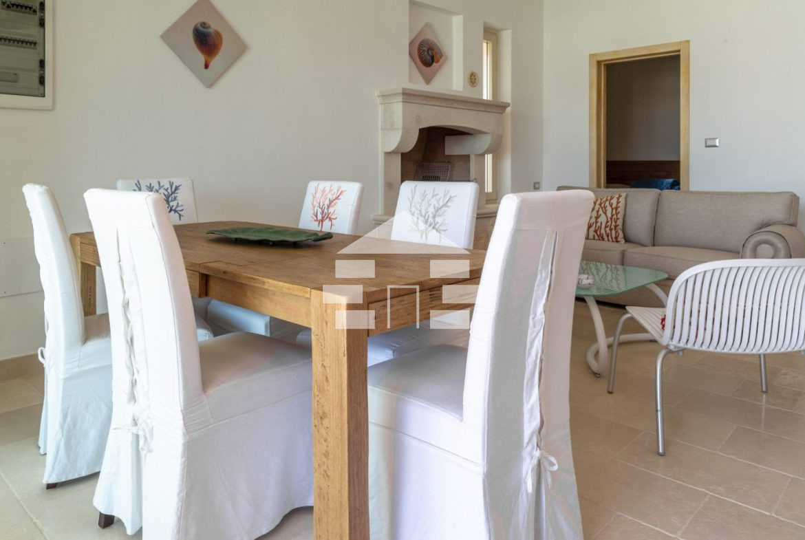D’AMICO IMMOBILIARE vende Villa con Piscina vista mare di 150 metri quadri coperti, su un giardino di 1.200 metri quadri , caratterizzato dalla presenza di piante tipiche della macchia mediterranea quali, cespugli di mirti, fichi d’india, ulivi secolari, siepi, rosmarino , timo. La Villa è realizzata in pietra viva tipica del Salento, ed è composta da Soggiorno, 4 Camere da letto matrimoniali, 5 bagni, una cucina, un bagno esterno, e Porticati esterni dai quali ammirare la bellissima vista mare.