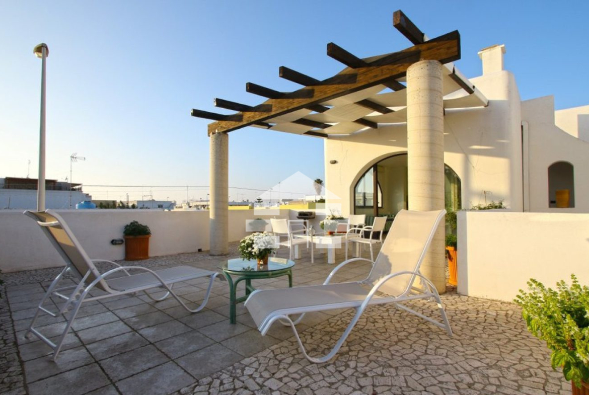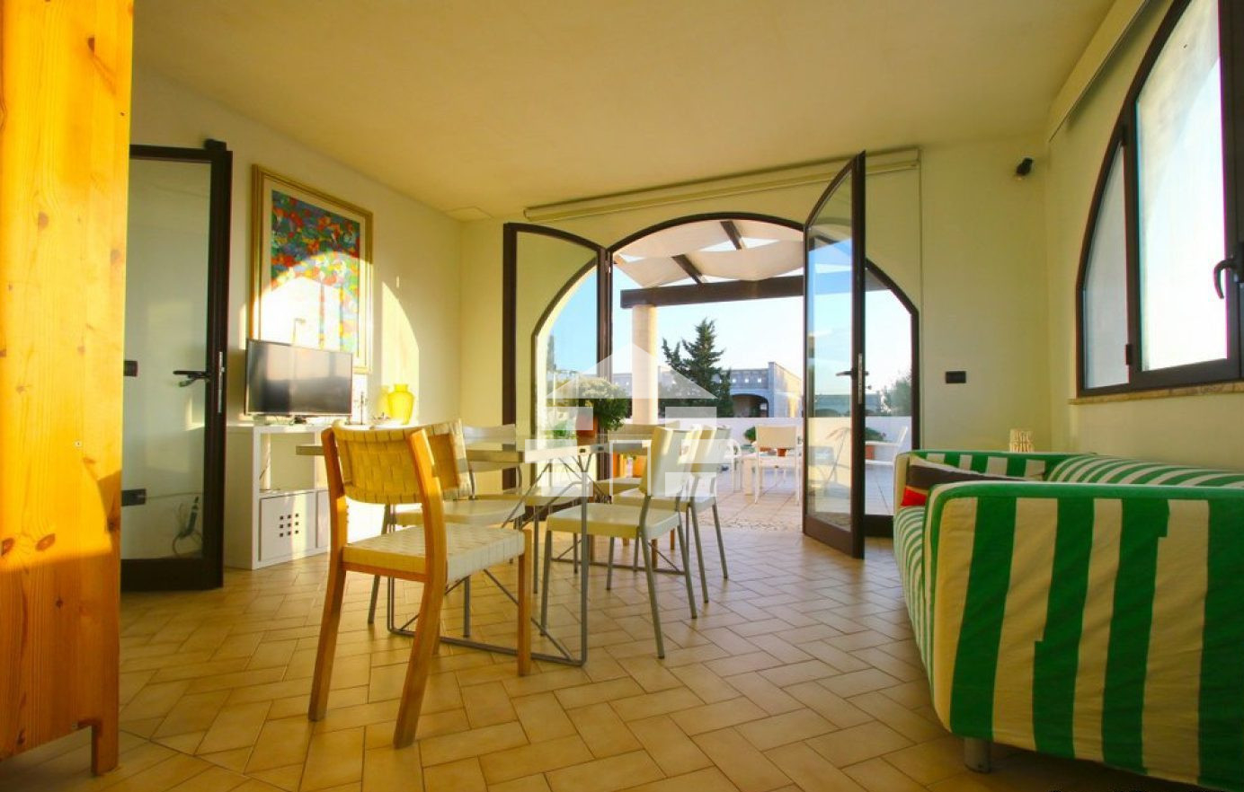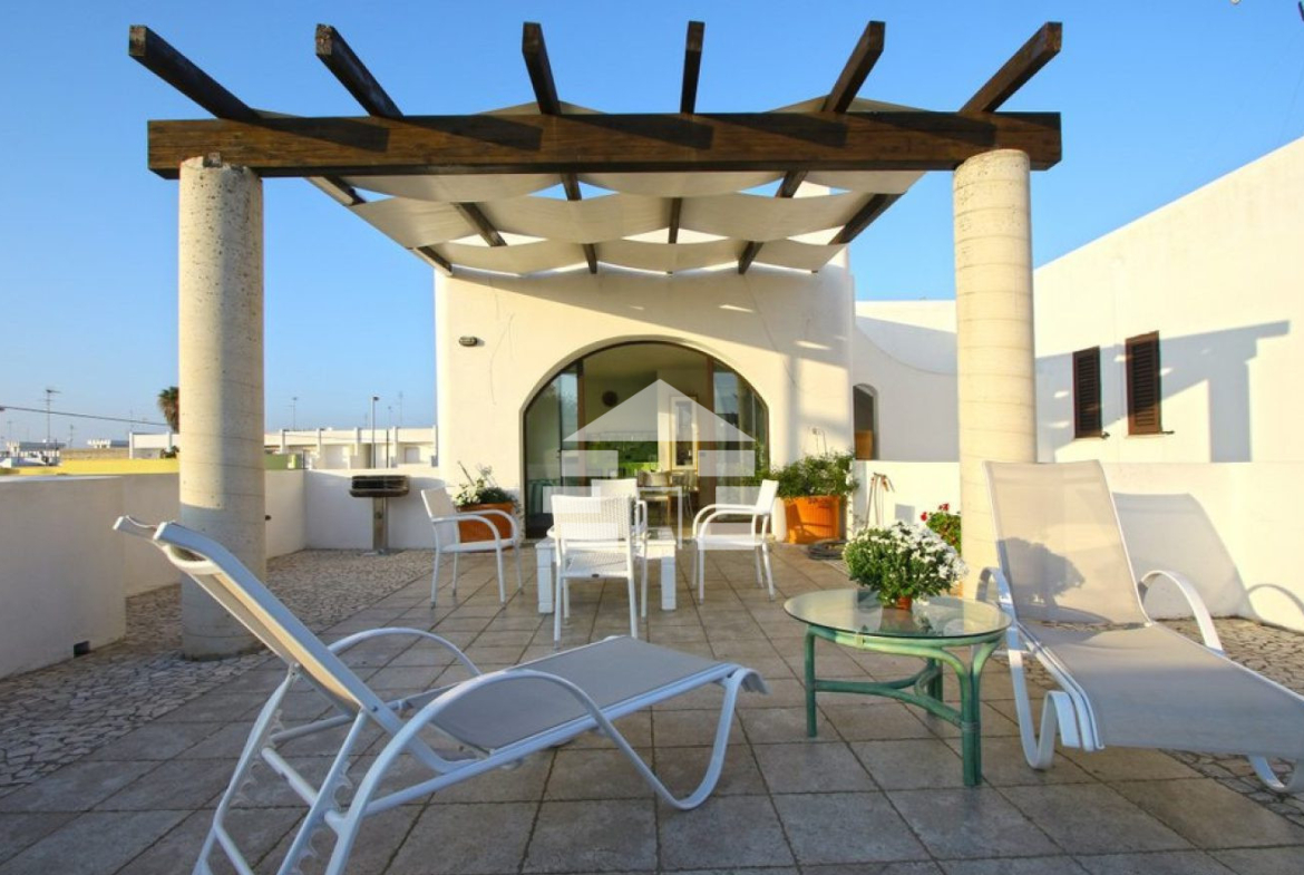 Nella marina di Torre Pali e 100 metri dalla spiaggia di Pescoluse, vendiamo un appartamento in stile mediterraneo a piano primo, con terrazza a piano primo vista mare, e accesso da piano terra esclusivo e privato, con posto auto.