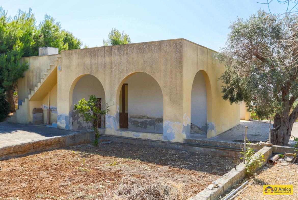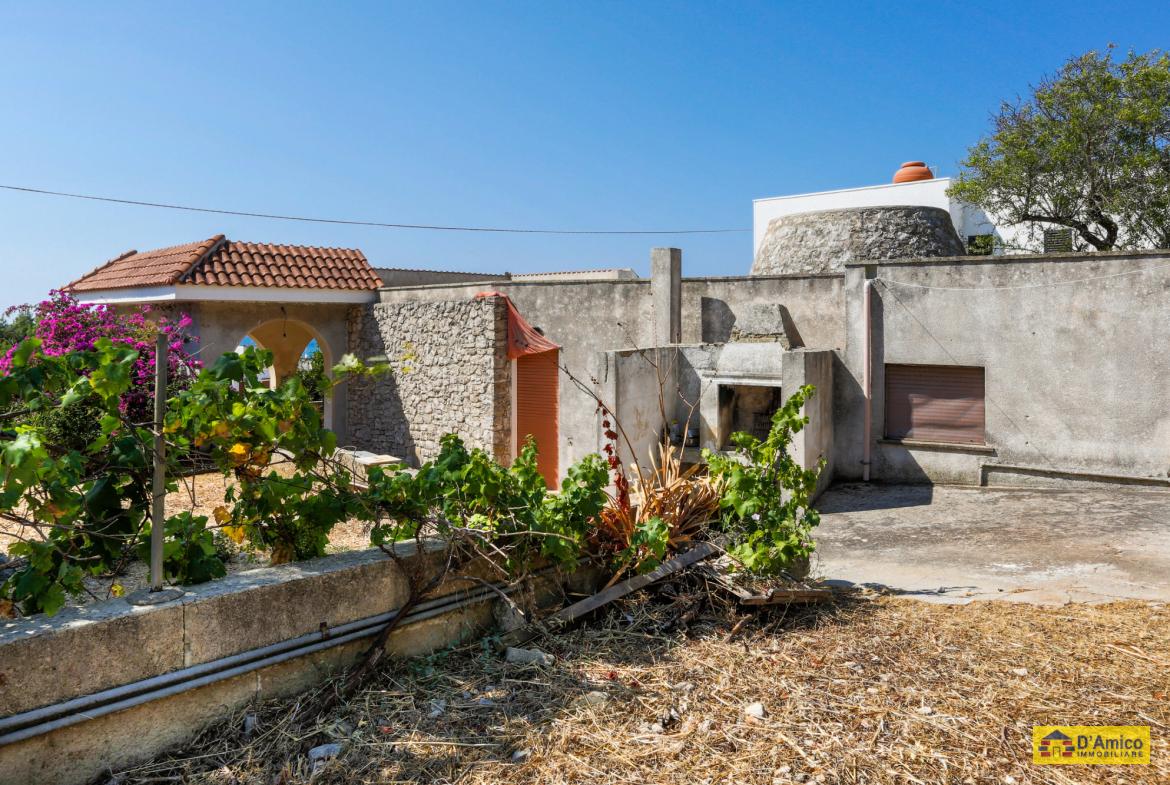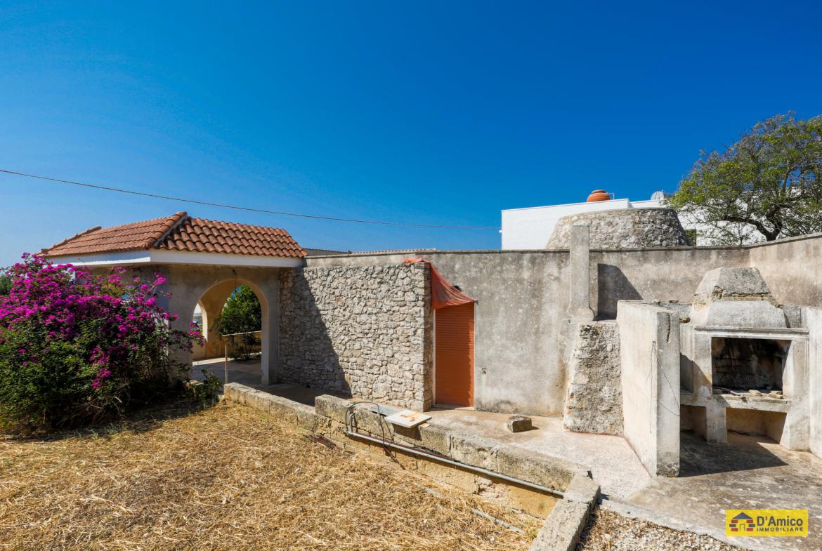 La Villa Bianca ha una superficie coperta di 120 metri quadri, con una grande veranda antistante coperta, e giardino tutto intorno. La Villa è composta da Soggiorno, Cucina, 3 Camere da letto, (di cui una in una Pajara o Trullo), 2 Bagni e un antico forno esterno, che un tempo veniva utilizzato per cuocere il pane, le frise e i biscotti.